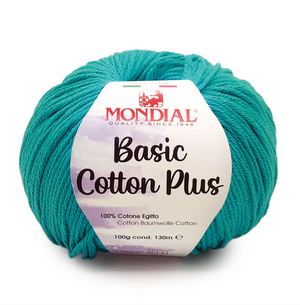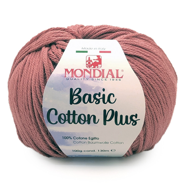 Basic Cotton Plus by Mondial, a very soft multi‑ply yarn, easy to work with and competitively priced.