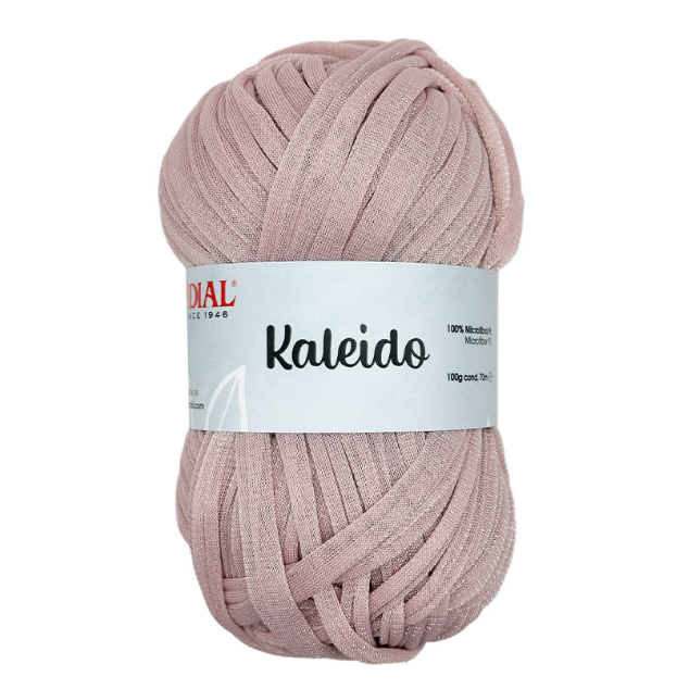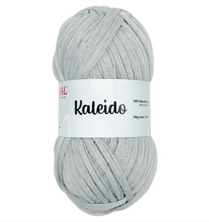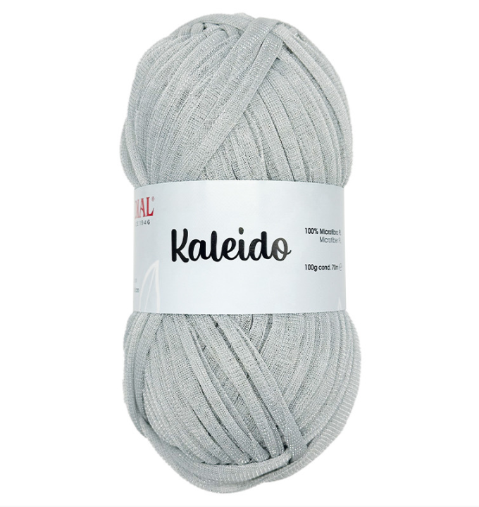 Kaleido by Mondial is an innovative soft tulle tape yarn with a glitter effect.