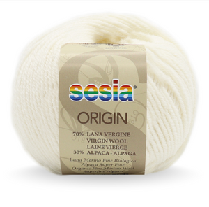 Origin by Sesia, un filato di lana merino biologica e alpaca morbido e caldo.