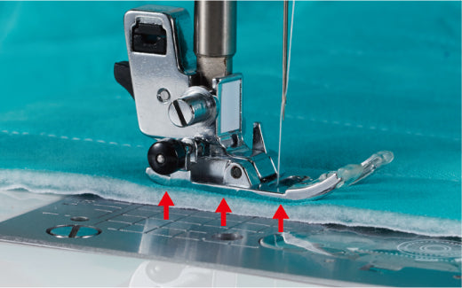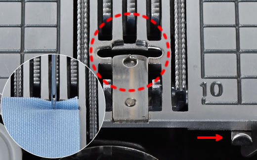 Prensatelas para punto recto: simplemente deslicen la palanca frontal para pasar al orificio para aguja individual. Permite coser los tejidos más finos con la mejor penetración de la aguja. El prensatelas para aguja individual evita que la tela penetre en el orificio de la aguja. Cose con precisión y perfección gracias al movimiento libre. Cosen con total tranquilidad, porque cuando la función de aguja individual está activada, solo pueden seleccionarse patrones de puntada recta.