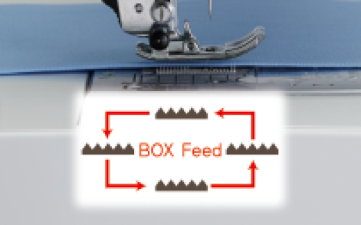 Transporte de movimiento rectangular - JUKI ha adoptado el sistema industrial de transporte de movimiento rectangular también para las máquinas de coser de uso doméstico. El sistema de movimiento rectangular permite crear puntadas de alta calidad sobre cualquier tipo de tejido. Realiza una costura plana incluso con tejido denim de espesor doblado en tres capas; cose uniformemente tejidos gruesos sin esfuerzo; el prensatelas permanece en contacto con la tela más tiempo para obtener una costura más fiable; cose tejidos finos, de hecho la tela no se pliega ni siquiera con algodón ligero; cose toallas de rizo; transporta con regularidad tejidos difíciles de coser.