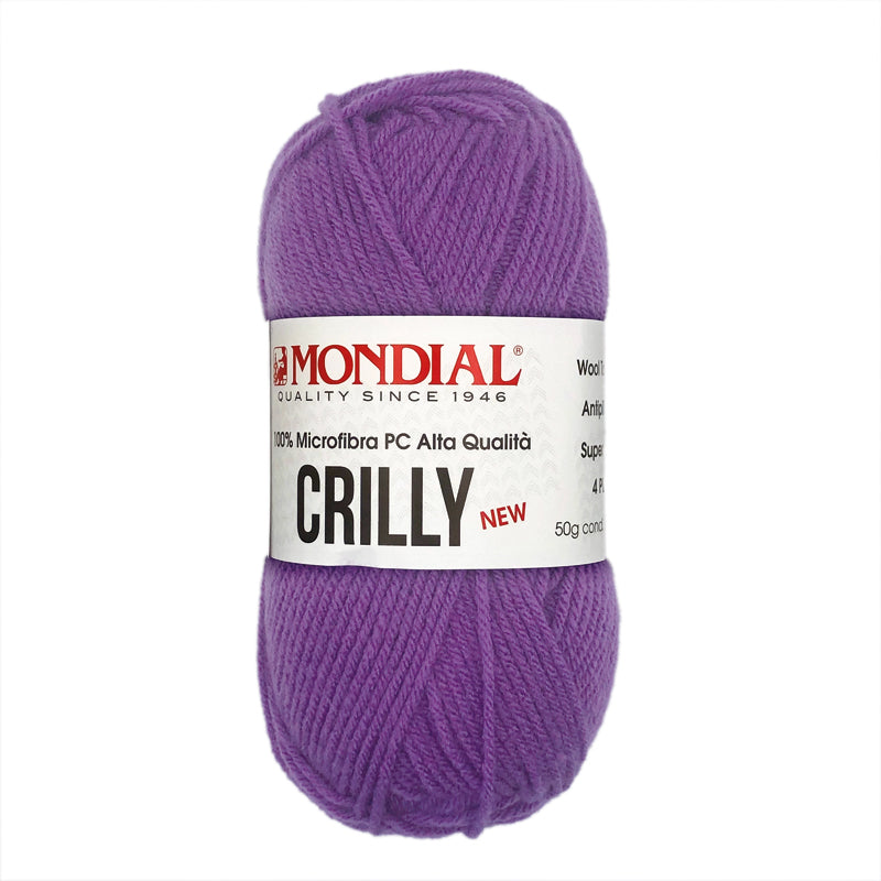 Crilly New, punta di diamante della collezione degli acrilici di Mondial, una nuova materia prima, una microfibra di alta qualità che garantisce un effetto antipilling mantenendo inalterate le caratteristiche e la morbidezza di questo articolo tanto apprezzato.