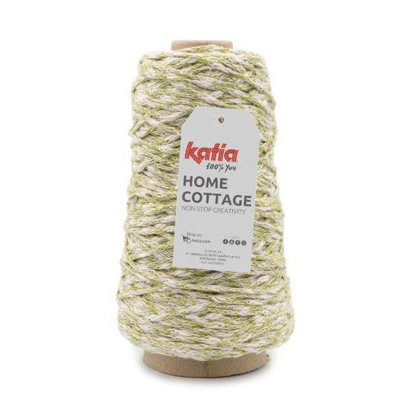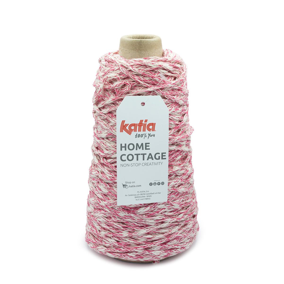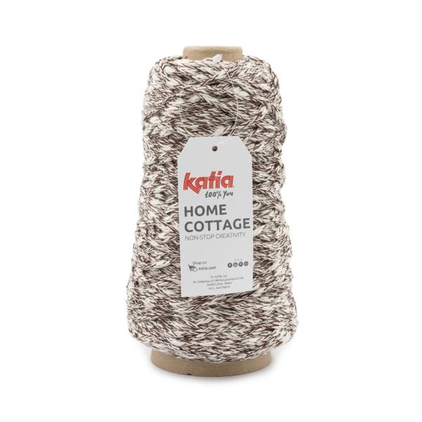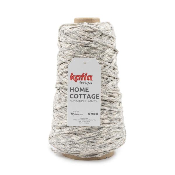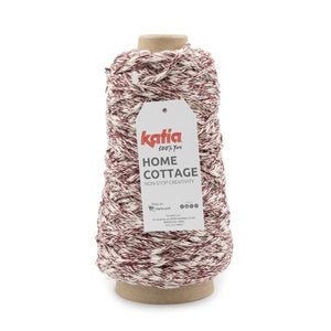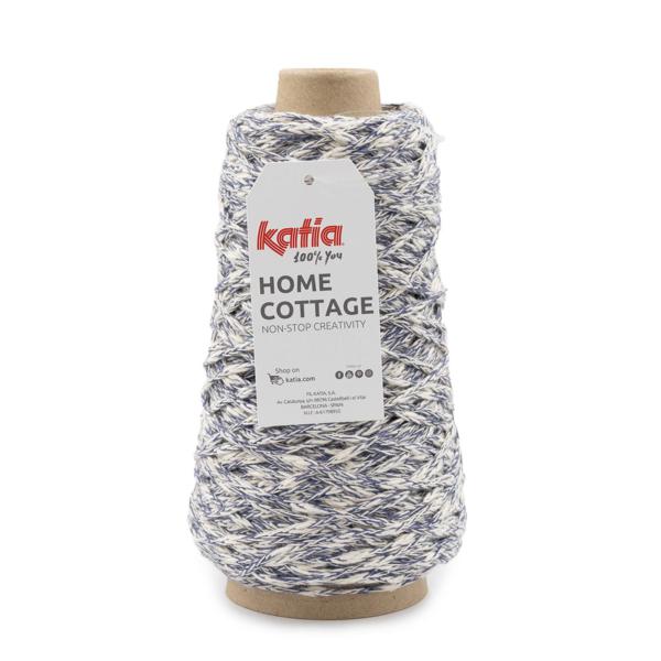 Home Cottage by Katia è un filato dall'aspetto rustico in cui una componente flamè di cotone naturale e una componente in poliestere riciclato sono perfettamente unite donando colore al filato.