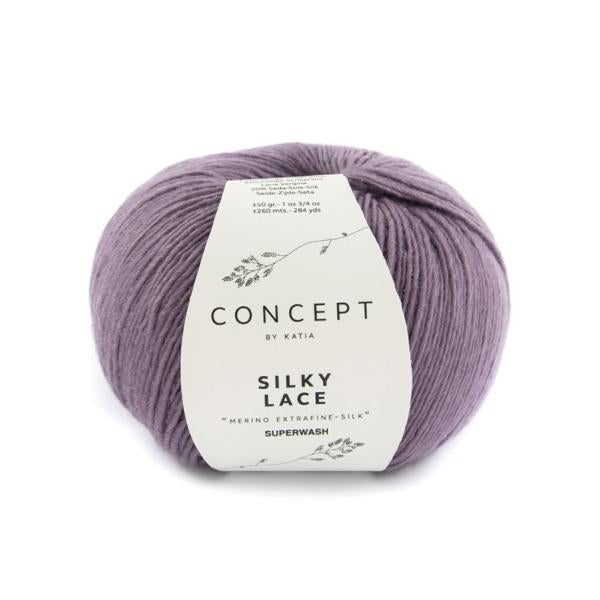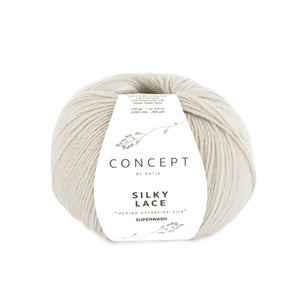 Silky Lace by Katia è un filato setoso dai colori delicati e brillanti. È sensazionale per realizzare comode maglie per l'autunno e leggere giacche da donna. La calda unione di seta e merino lo rendono ideale anche per realizzare caldi scialli traforati. Ferri 3/3.5