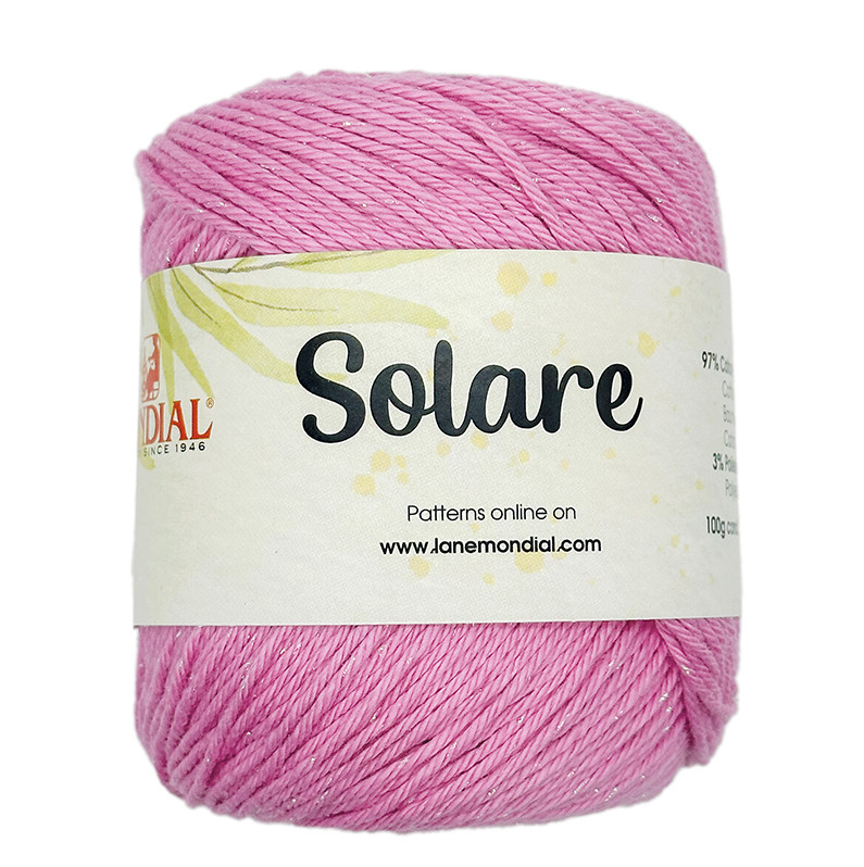 Solare by Mondial, un delicato effetto luminoso su una base morbidissima: questa potremmo definirla l’essenza di Solare, un nuovo filato estivo che si presenta come un cotone ritorto, piacevolissimo al tatto, arricchito da un filo di lamè madreperla che gli conferisce una dolce brillantezza.